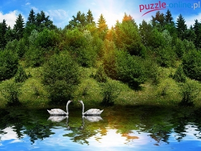 Puzzle Jezioro, Łabędzie, Drzewa