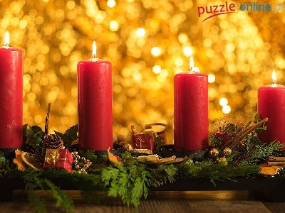 Adwent, Bokeh, Świece, Kompozycja, Boże Narodzenie