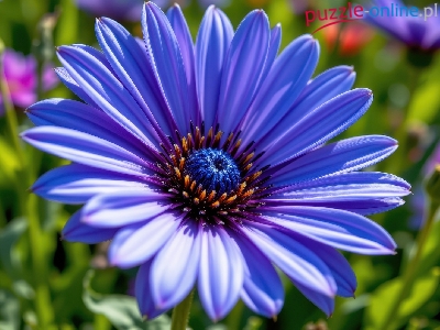 Puzzle Stokrotka afrykańska, Kwiat, Niebieski, Zbliżenie