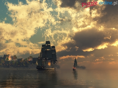 Puzzle Ostrzał, Żaglowiec, Płomienie