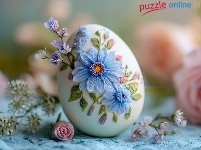 Puzzle Grafika AI, Jajko, Kwiaty, Wielkanoc