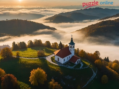 Mgła, Góry, Kościół, AI, Drzewa, Jesień, Drzewa