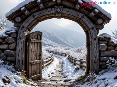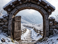Droga, Zima, Ogrodzenie, AI, Brama, Drewniana, Góry