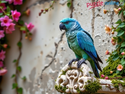 Kwitnące, Ptak, Ściana, AI, Papuga, Niebieska, Pnącza