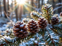 Śnieg, Zima, Szyszki, AI, Sosna, Gałązka, Las