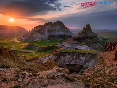 Dolina Zamków, Manggystau, Kazachstan, Skały, Zachód słońca, Airakty