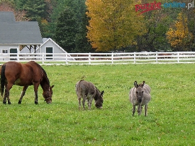 Łąka, Dwa, Drzewa, Koń, Osiołki, Zagroda