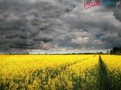 Puzzle Żółte, Chmury, Łąka, Kwiatki