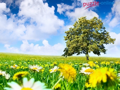 Puzzle Kwiaty, Łąka, Drzewo