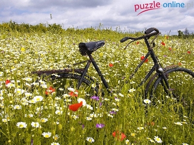 Puzzle Kwiaty, Łąka, Rower