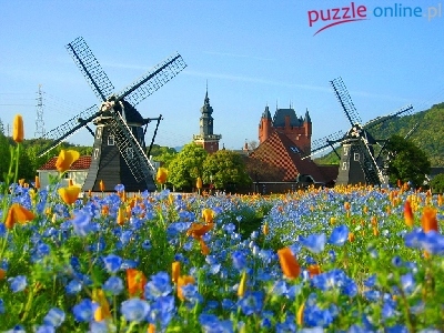 Puzzle Kwiaty, Łąka, Wiatraki