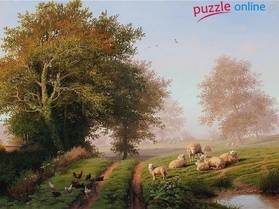 Kury, Łąki, Obrazu, Droga, Owce, Drzewa, Reprodukcja