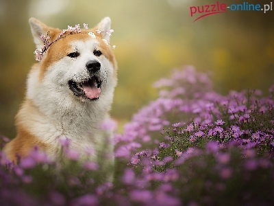 Wianek, Akita inu, Astry marcinki, Pies, Mordka, Kwiaty