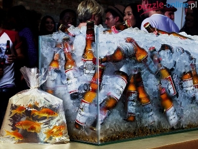 Akwarium, Budweiser, Piwo, Lód, Rybki