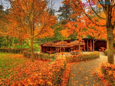 Aleja, Park, Jesienią, Altana