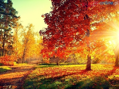 Aleja, Promienie Słońca, Jesień, Park, Drzewa