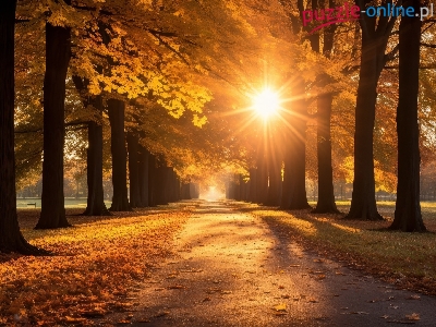 Jesień, Park, Drzewa, Aleja, Promienie słońca
