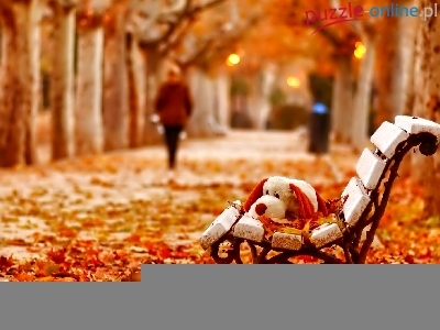 Ławka, Postać, Park, Alejka, Pluszak