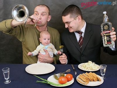 Puzzle Alkohol, Mężczyźni, Dziecko, Zakąska