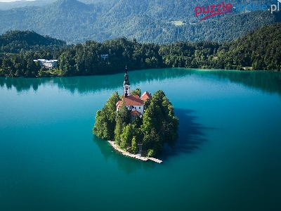 Alpy Julijskie, Blejski Otok, Wyspa, Jezioro Bled, Słowenia, Góry