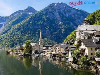 Góry Alpy Salzburskie, Domy, Austria, Hallstatt, Jezioro Hallstattersee