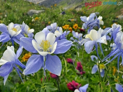 Puzzle Ancolia, Błękitno, Biała, Łąka