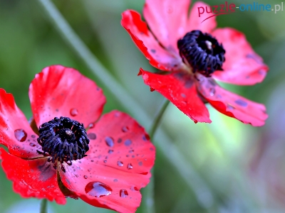 Puzzle Anemony, Różowe, Kwiaty, Makro