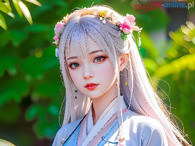 Kimono, Dziewczyna, Kwiaty, Anime, Włosy, Białe, Rośliny