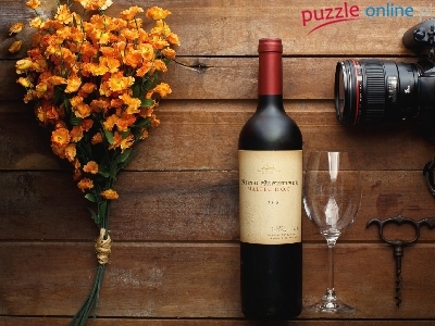 Kieliszek, Sztuczne, Aparat fotograficzny, Bukiet, Deski, Wino, Butelka, Kompozycja, Kwiaty, Korkociąg
