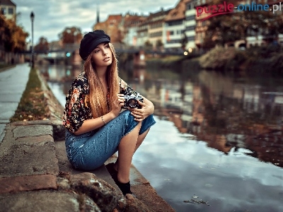 Puzzle Aparat fotograficzny, Kobieta, Rzeka