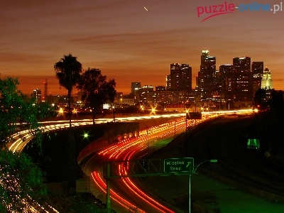 Panorama, Arterie, Drzewa, Nocą, Los Angeles, Miasta, Komunikacyjne