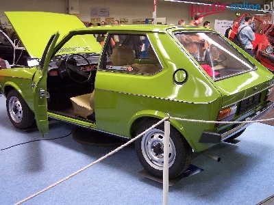 Audi 50, Pomarańczowe, Reklama Wystawa, Audi 50, Prezentacja Audi 50 Drzwi, Audi 50 Zderzak, Przód, Audi 50, Chrom Audi 50, Hatchback