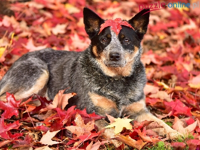 Puzzle Australian cattle dog, Pies, Liście