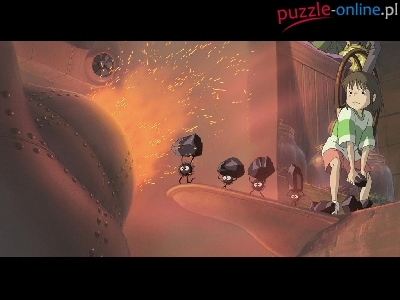 dziewczyna, Spirited Away, budynek Spirited Away, chłopiec Spirited Away, twarze postacie, Spirited Away, most miasto, Spirited Away, napisy dom, Spirited Away, drzewa chłopak, Spirited Away, zwierz ziemia, Spirited Away, niebo