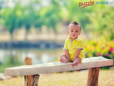 Puzzle Żółte, Chłopiec, Ławeczka, Ubranko
