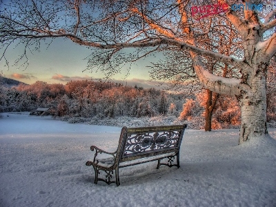 Puzzle Śnieg, Lasy, Ławka, Zima