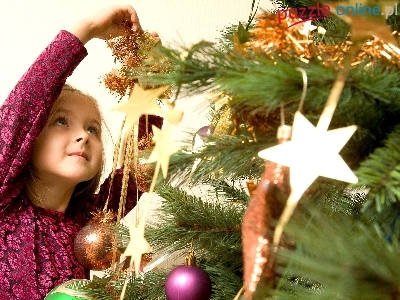 Puzzle BÄ…bki, Dziewczynka, Choinka, Gwiazdki
