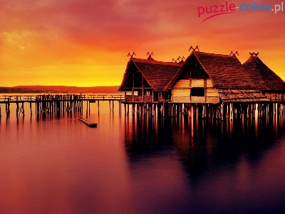 Bale, Słońca, Domy, Woda, Zachód