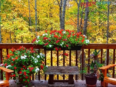 Balkon, Jesień, Las, Kwiaty