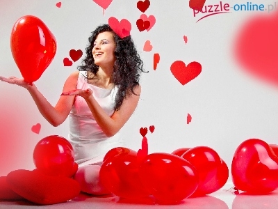 Baloniki, Walentynki, Uśmiechnięta, Brunetka, Serduszka