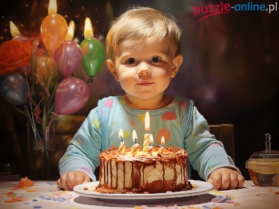 Puzzle Dziecko, Tort, Urodziny, Balony
