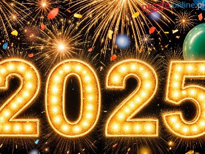 Sylwester, Nowy Rok, Fajerwerki, Grafika, Data, 2025, Balony