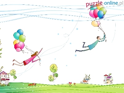 Puzzle Balony, Para, Zakochanych, Lot