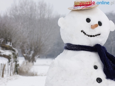 Puzzle Bałwan, Pola, Drzewa, Zima