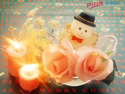 Puzzle Bałwanek, Święta, Stroik, Świeczki