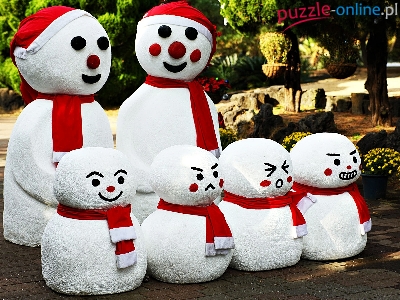 Puzzle Czerwone, Bałwanki, Czapeczki