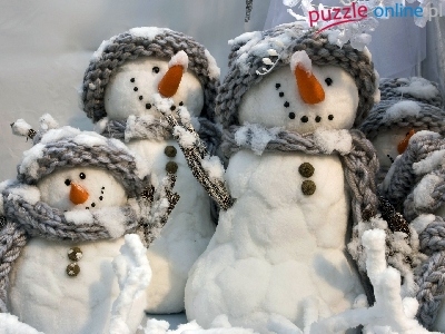 Puzzle Szare, Bałwanki, Czapeczki