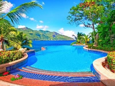 Basen, Kwiatki, Góry, Morze, Drzewa