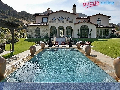 Puzzle Basen, Dom, Ogród, Wzgórza