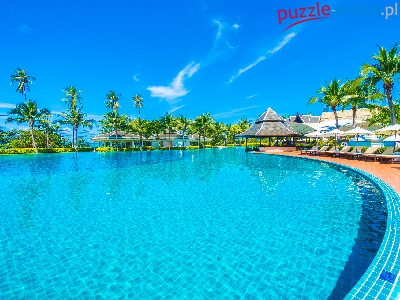 Fotele, Parasole, Palmy, Hotel, Morze, Domki, Lato, Basen